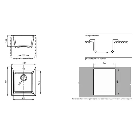 Мойка SANTREK AQUA BOXY SA-B505 1 чаша 427*505 мм (песок-302) (без сифона)
