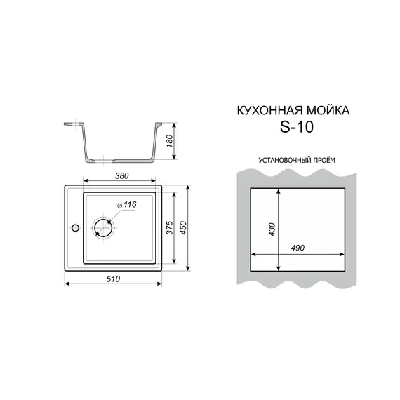 Мойка врезная SIMGRAN S-10 510*450мм Асфальт Глянец