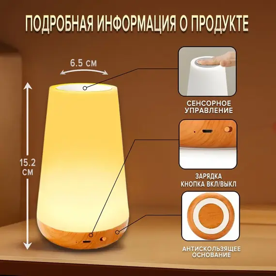 Ночник светильник настольный Candle, для дома в спальню на аккумуляторе.