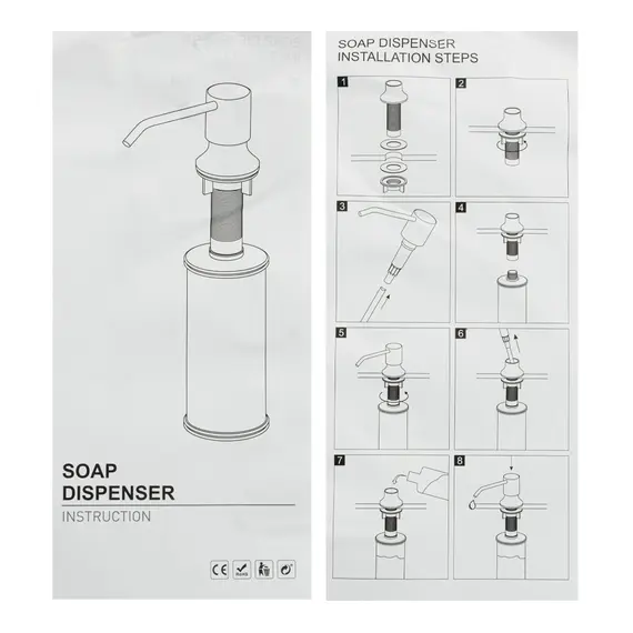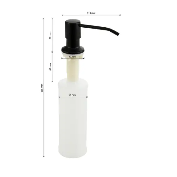 Дозатор для жидкого мыла и моющих средств 6284. ЧЁРНЫЙ, Врезной, под раковину, пластиковый, 300 мл,