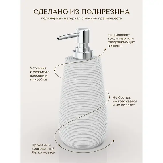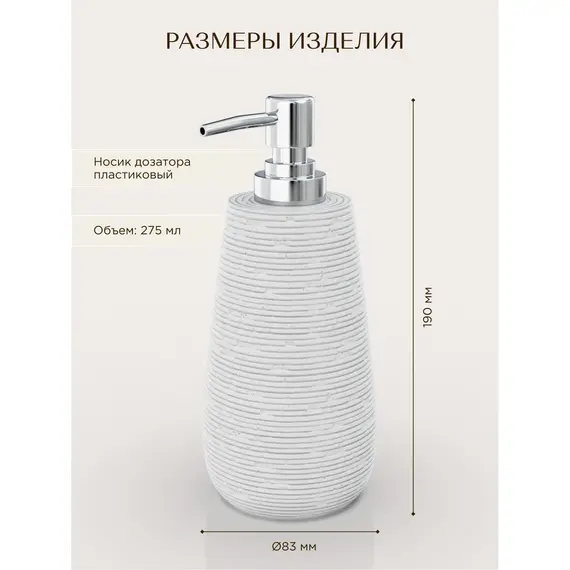 Дозатор для жидкого мыла, настольный BRICKS,WHITE, Полирезин FOR-BRK021W