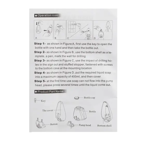 Дозатор жидкого МЫЛА, универсальный, пластиковый, БЕЛЫЙ, с глазком - капля, 400 мл