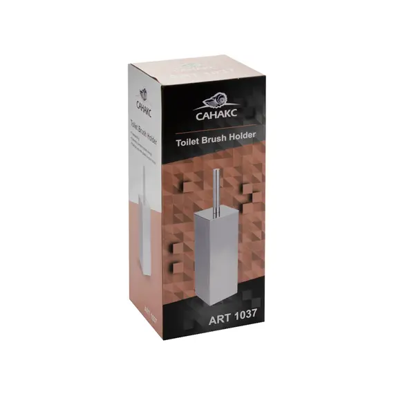 Ёрш для унитаза напольный, квадратный, 1037 ПРЕМИУМ, с ИЗОГНУТЫМ ЁРШИКОМ, из нерж. полированной ст