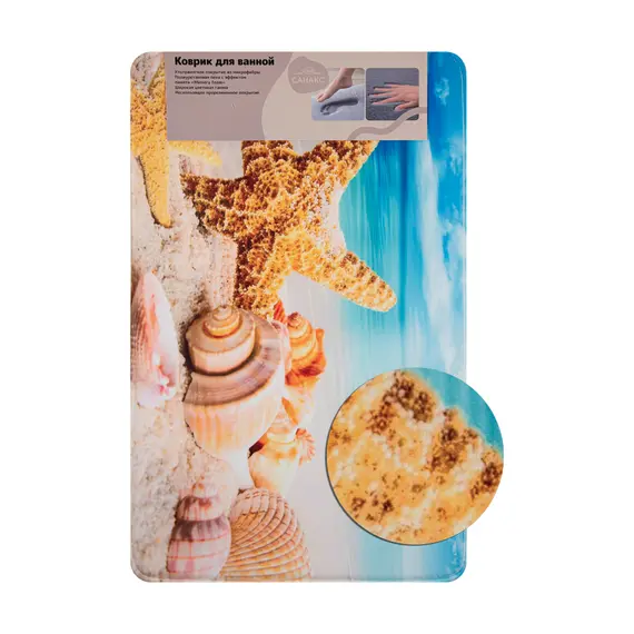 Коврик в ванную ПАМЯТЬ - эффект восстановления, одинарный, дизайнерский - ракушки 50 х 80 см
