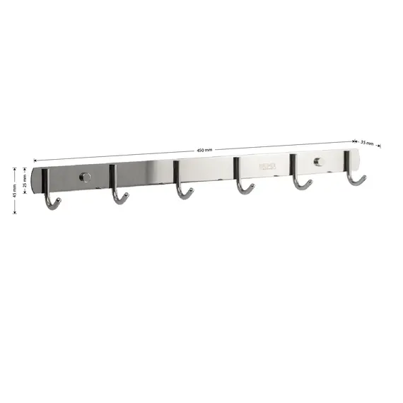 Крючок для полотенца 5716 на планке 6 шт, из нержавеющей стали, цвет хром