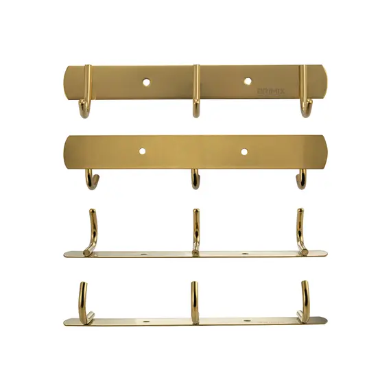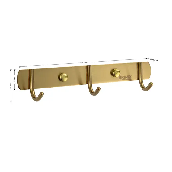 Крючок для полотенца на планке 3 шт 5763, из нержавеющей стали, цвет матовое золото