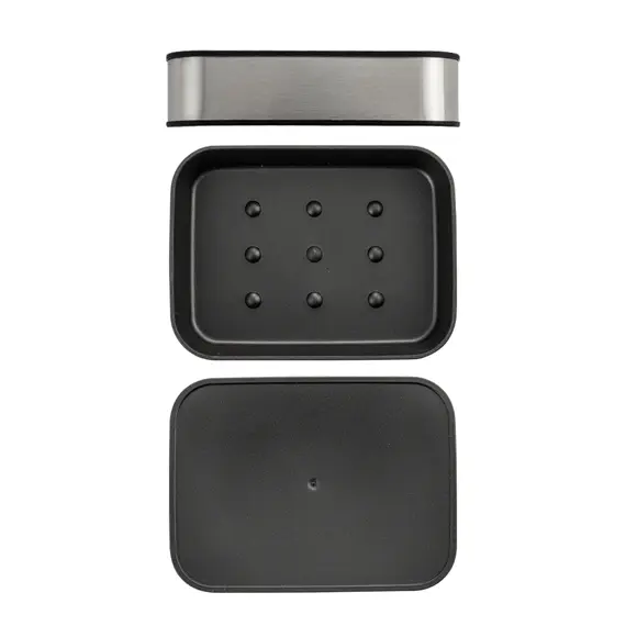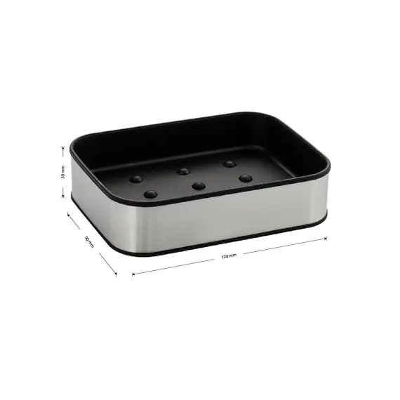 Мыльница Санакс 22073 настольная, матовая нержавеющая сталь + чёрный пластик