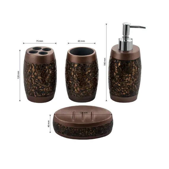 Набор в ванную настольный акриловый 20801, коричневый, битое стекло