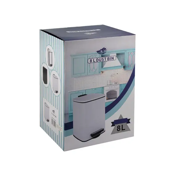 Ведро из нержавеющей стали 10818, с педалью, квадратное, 8 л, белого цвета