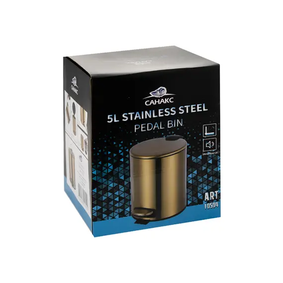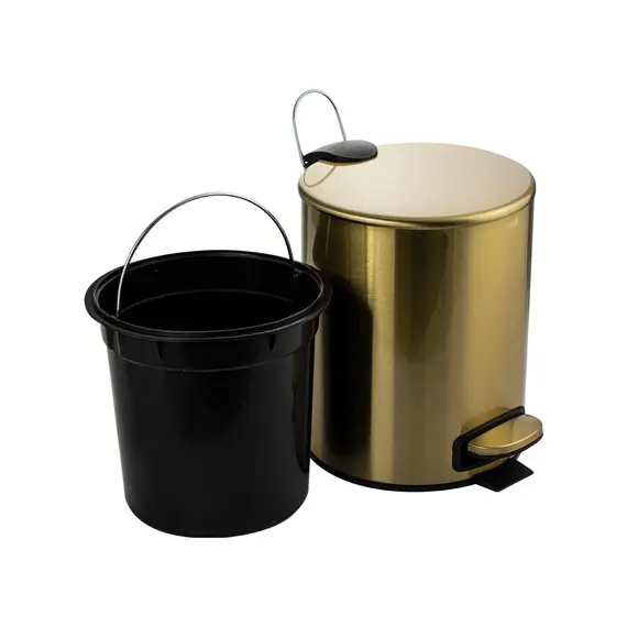Ведро круглое 10504, 5л, с микролифтом, из нержавеющей стали, с педалью, цвет ЗОЛОТО МАТОВОЕ