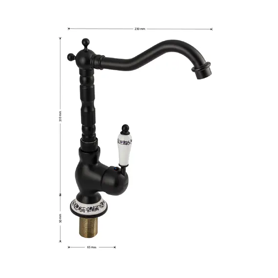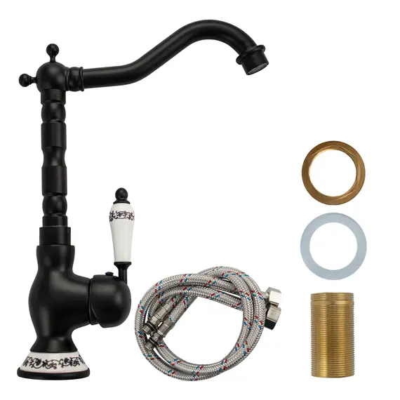 Смеситель для кухни 1533, черный, высокий излив, поворот на 360 градусов, шаровый из латуни