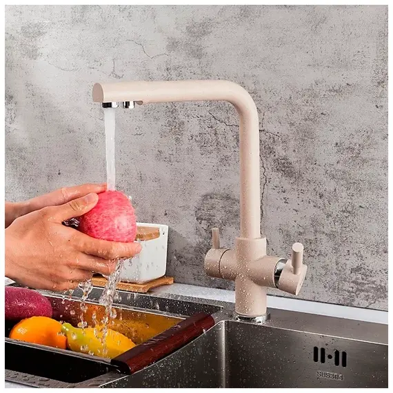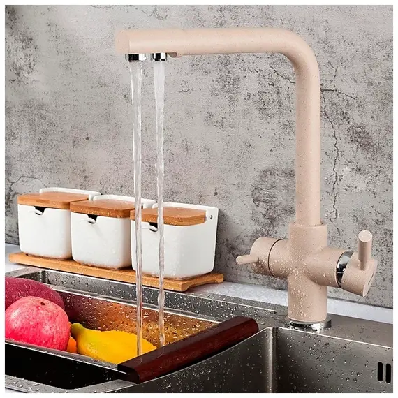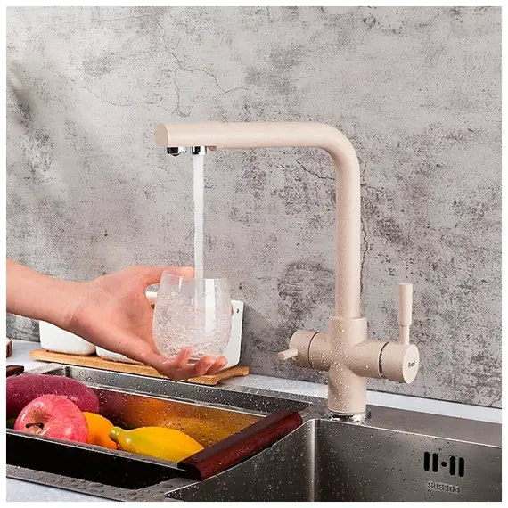Смеситель для кухни Frap F4352-23 шар.40 Бежевый со встроенным краном под питьевую воду
