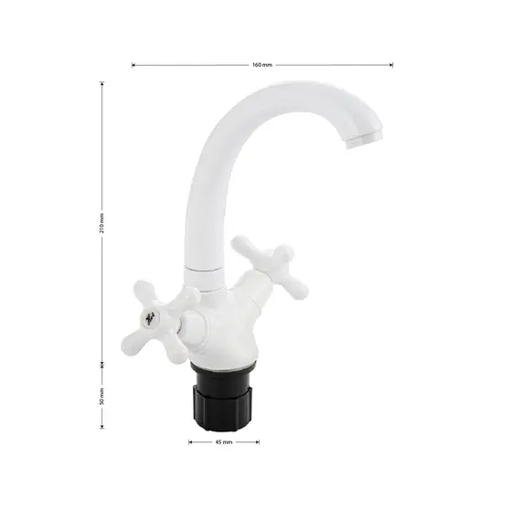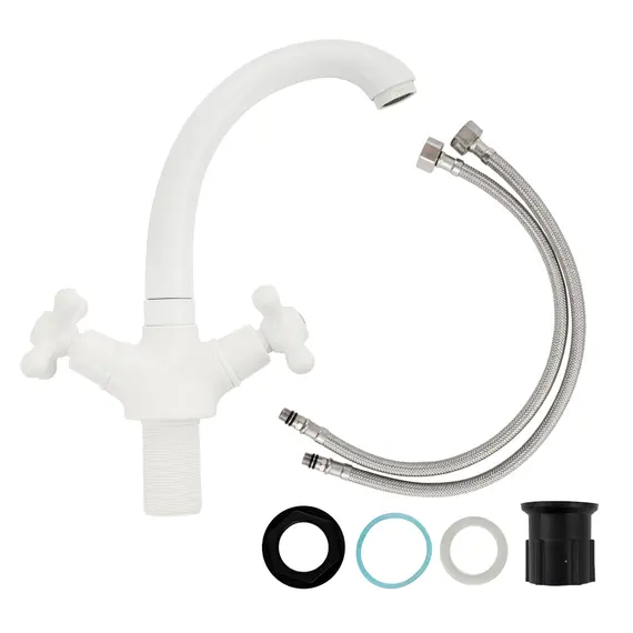Смеситель для кухни, металлокерамика 4409, из высокопрочного АБС пластика, ручка КРЕСТ, цвет БЕЛЫЙ.