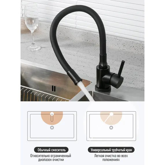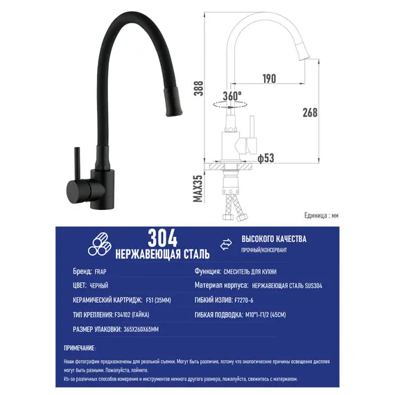 Смеситель для кухни с гибким изливом Frap F40994-6 шар.35 черный