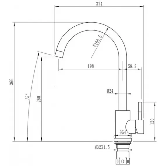 Смеситель для кухни Sus-011-N из нержавеющей стали без подводки Chrome Champion