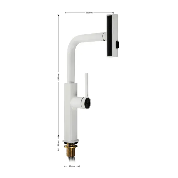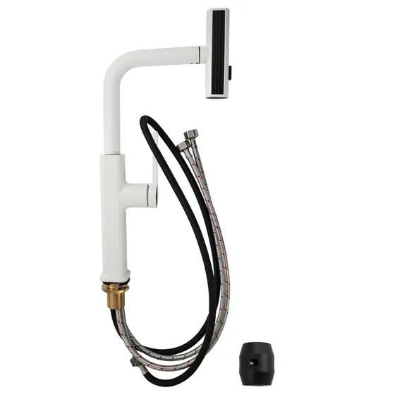 Смеситель кухонный 8263, шаровый, Г - образный излив вытяжной, корпус из латуни белого цвета