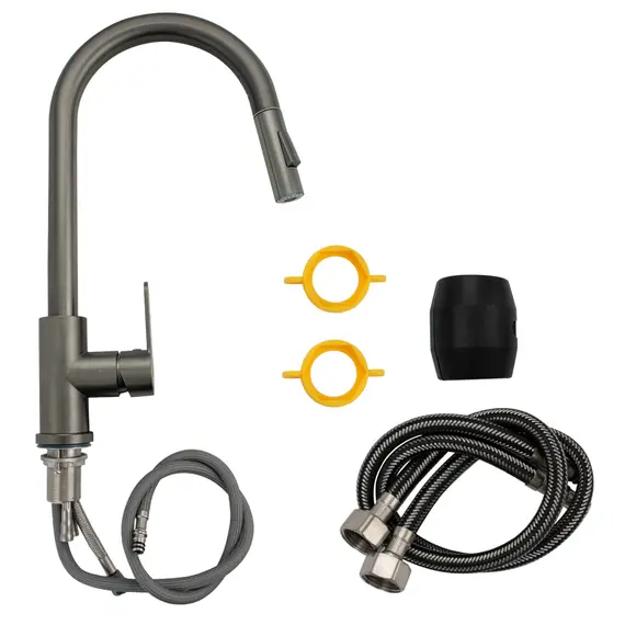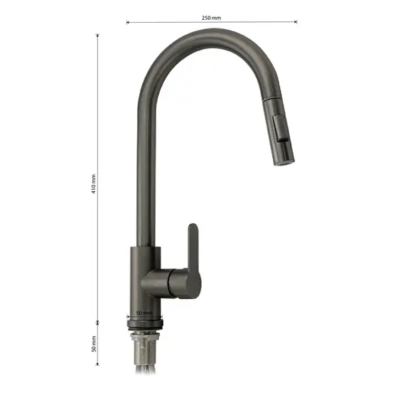 Смеситель кухонный, шаровый 9128, ГРАФИТ, С - образный излив вытяжной, из нержавеющей стали