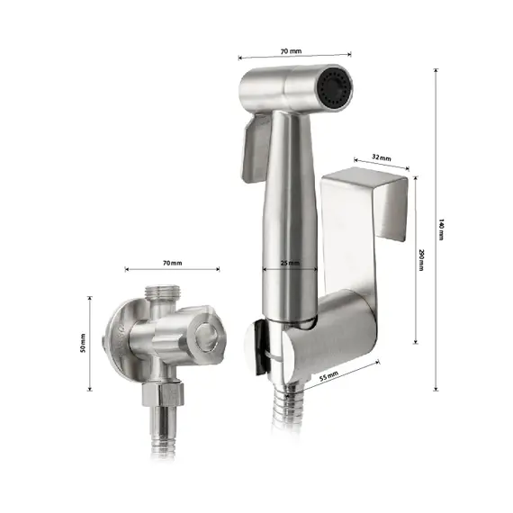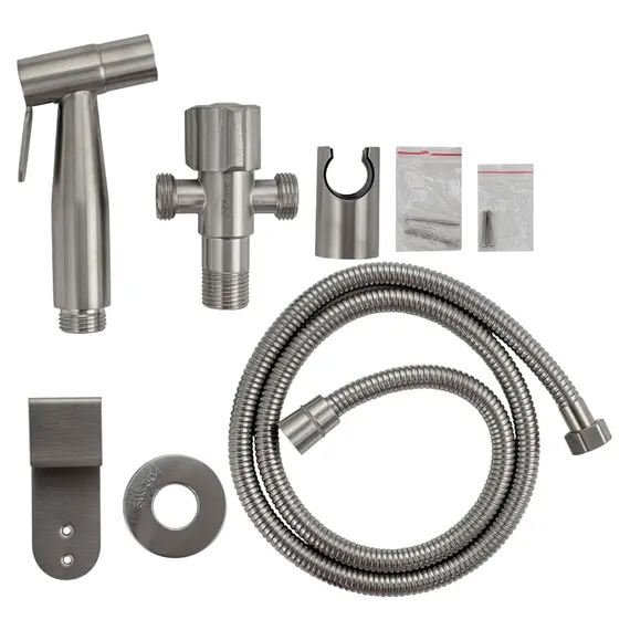 Набор биде гигиенический из нержавеющей стали 2061, матовый, (шаровый кран + лейка + шланг)