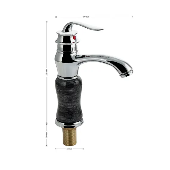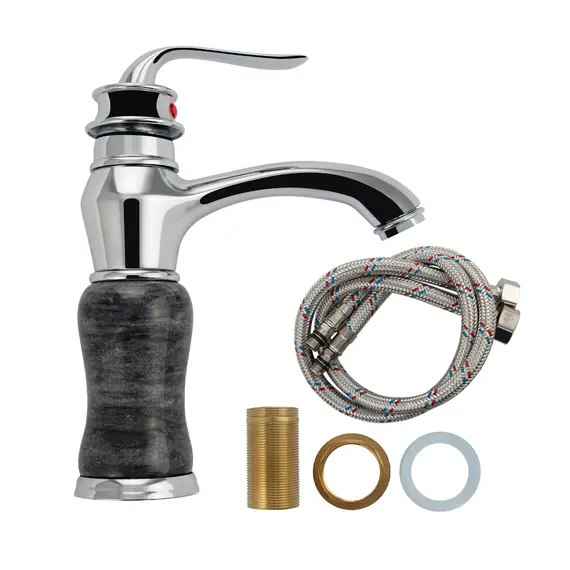 Смеситель для раковины 1682, корпус под черный мрамор с хромированными вставками, шаровый, АБС.