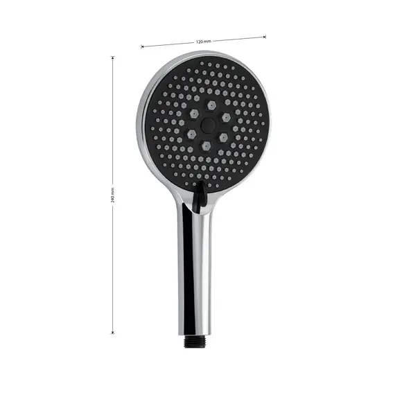 Лейка душевая массажная 6080, круглая, хромированная с черной вставкой, 3 режима .