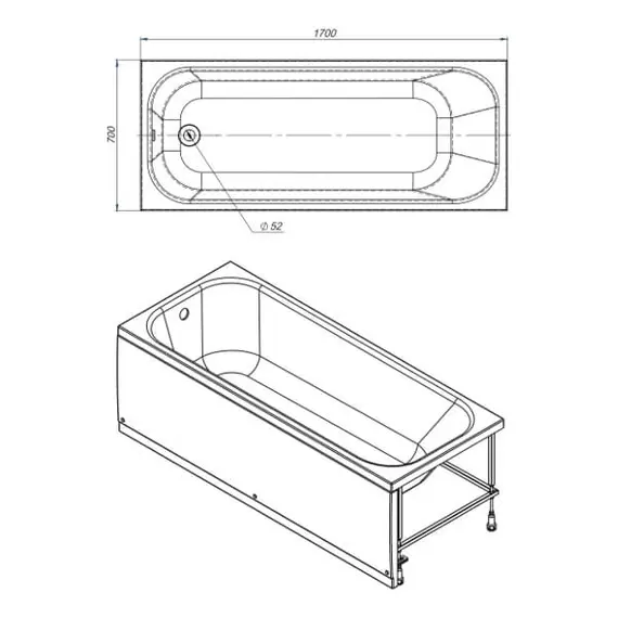 Ванна акриловая Mirsant Анапа 170*70*55 +экран и каркас