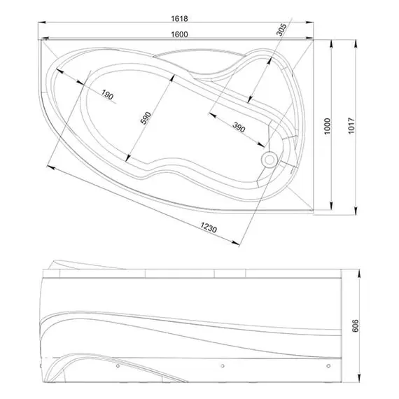 Ванна акриловая Mirsant Ливадия 160*100*57 правая +экран и каркас
