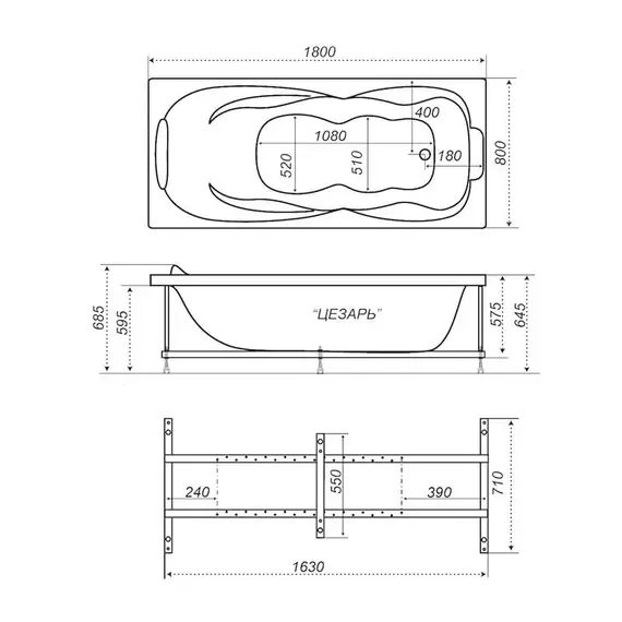 Ванна Triton Цезарь 180*80*60 акриловая с экраном