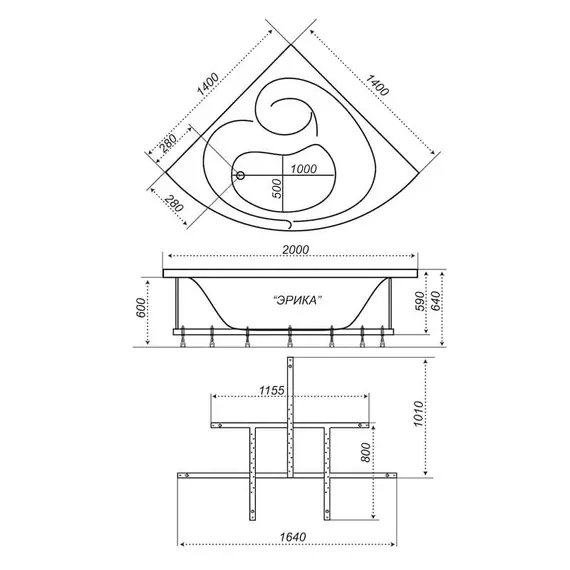 Ванна Triton Эрика 140*140*64 акриловая с экраном