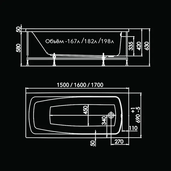 Ванна Triton Лондон 170*70*63 акриловая с экраном