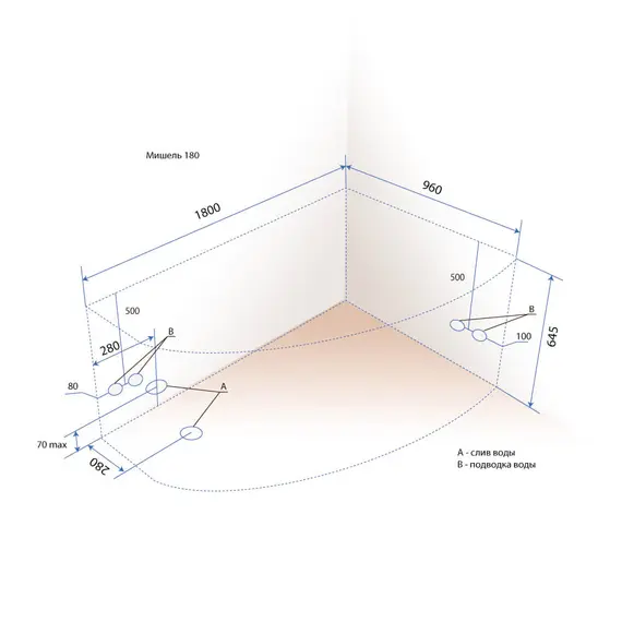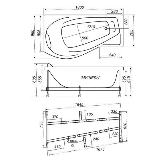 Ванна Triton Мишель 180*96*64 правая акриловая с экраном
