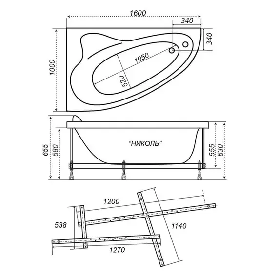 Ванна Triton Николь 160*100*63 левая акриловая с экраном