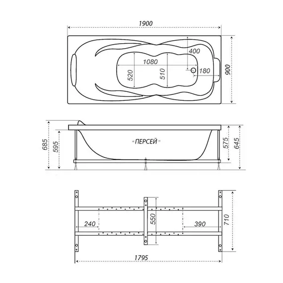 Ванна Triton Персей 190*90*68 акриловая с экраном