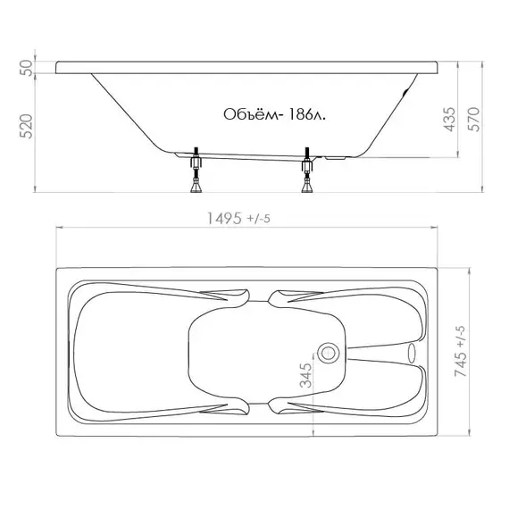 Ванна Triton Стандарт 150*75*57 акриловая с экраном