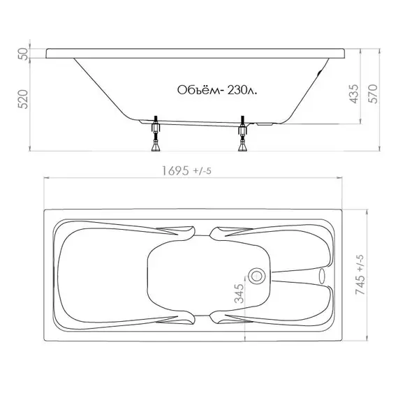 Ванна Triton Стандарт 170*75*57 акриловая с экраном