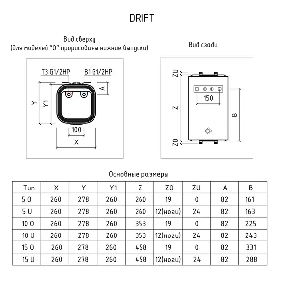Водонагреватель Thermex Inox Drift 10 O 1,5кВт G5 260*260*353