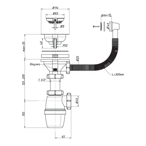 Сифон бутылочный Орио 3 1/2"х40 мм, с круглым переливом Е-5007