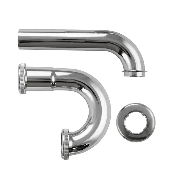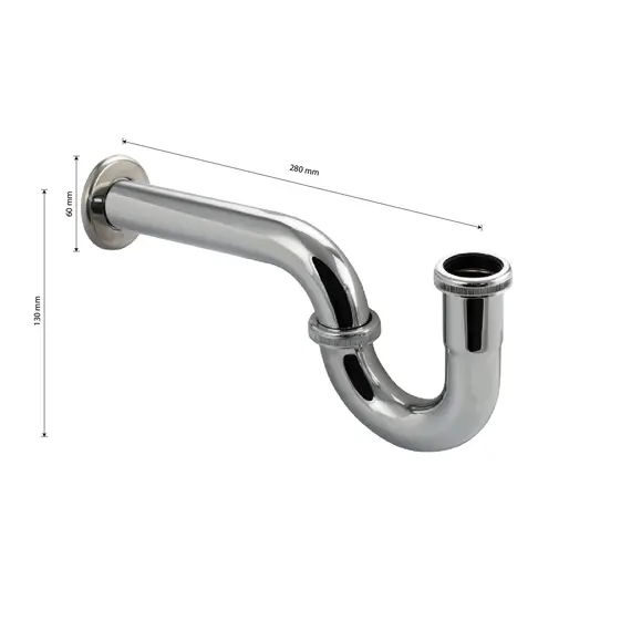 Нижняя часть сифона на раковину 8719, ХРОМ, для открытых раковин, врезка в стену из нерж