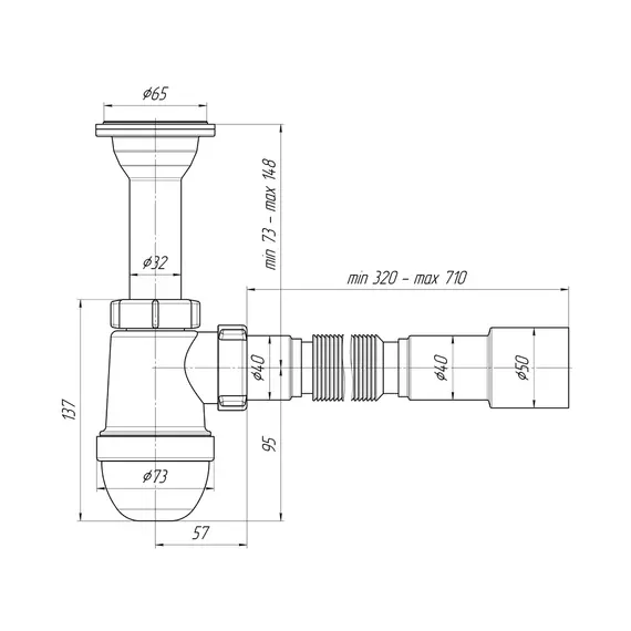 Сифон АНИ С2015 для умывальника 1 1/4"*40 с литым выпуском, с гибкой трубой 40*40/50