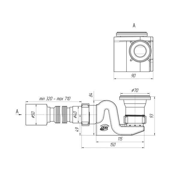 Сифон АНИ Е615 Бриг для душевого поддона плоский 1 1/2"*40 с гибкой трубой 40/50