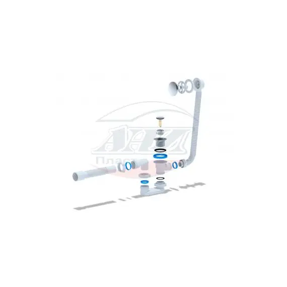 Сифон АНИ EC055S для ванны прямоточный с выпуском 1 1/2"*40 с переливом, клик-клак, с гибкой трубой