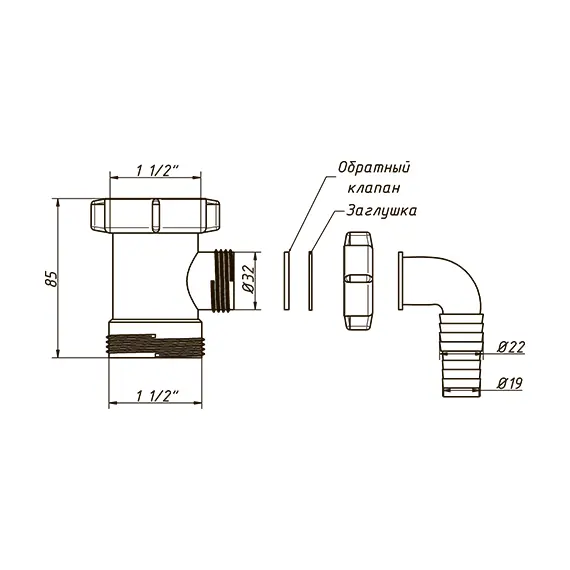 А-4154 Отвод для стиральной машины 1 1/2"-1 1/2"