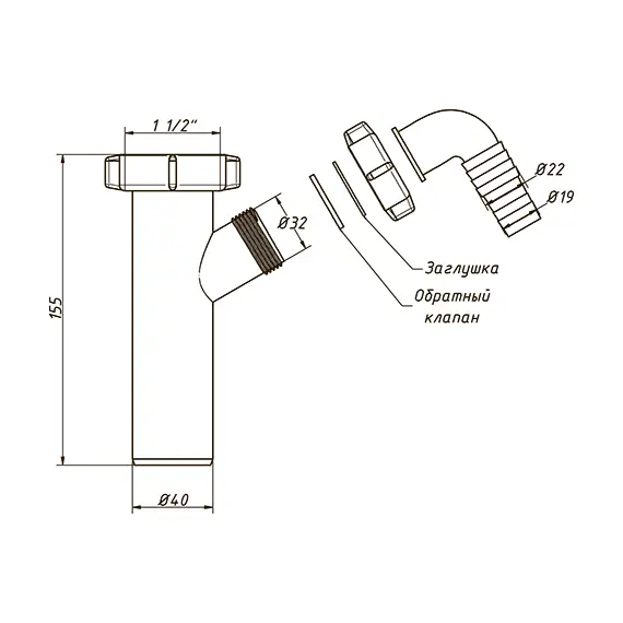 А-4155 Патрубок 1 1/2"40 с одним отводом