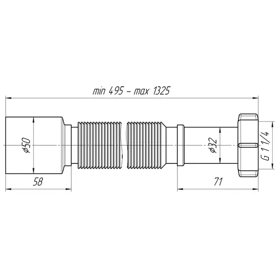 Гофра для сифона АНИпласт 1 1/4"*50 удлиненная (495-1325мм) К215