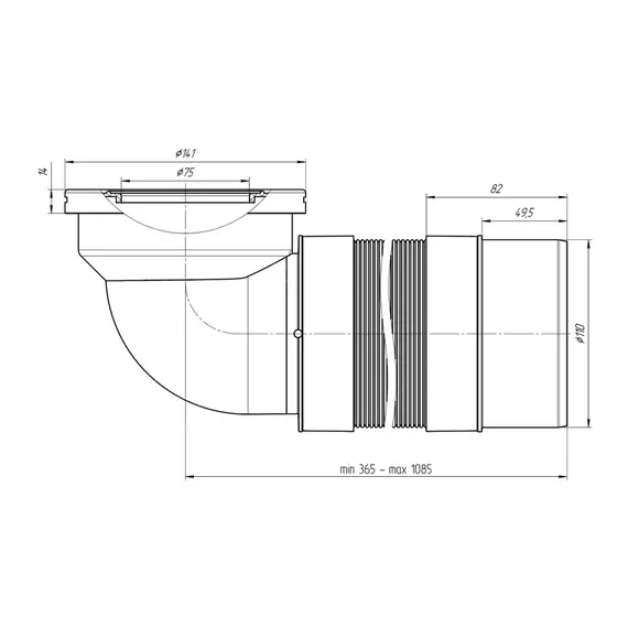 Гофра для унитаза АНИпласт угол 90° выпуск 110мм (365-1085мм) К732R