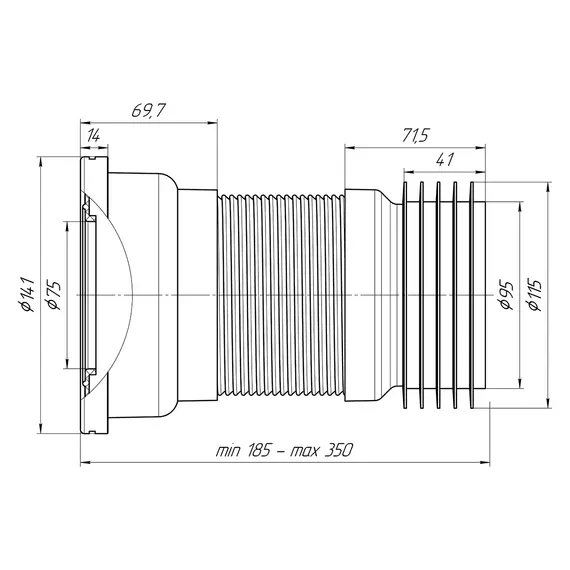 Гофра для унитаза АНИпласт выпуск 110мм (260-560мм) К918