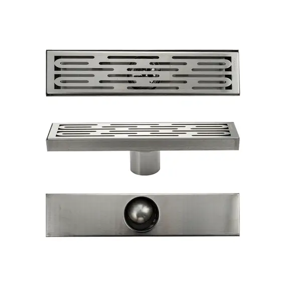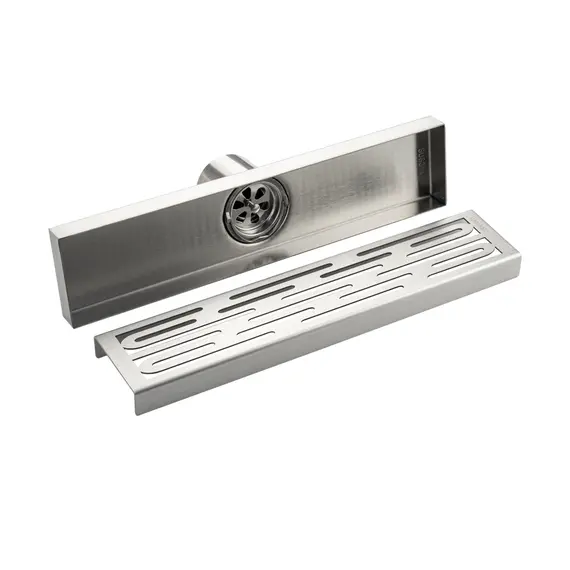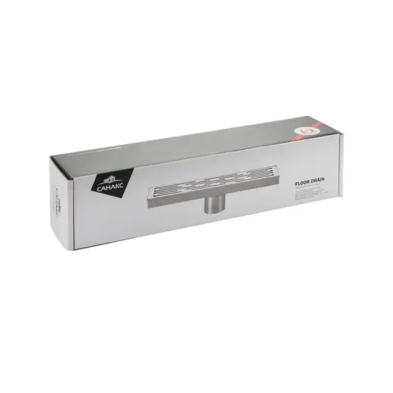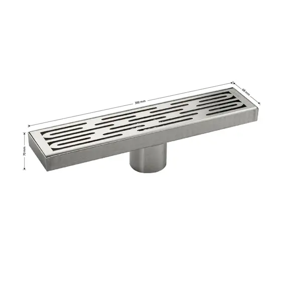 Трап 300х68 мм, нержавеющая сталь, линейный, вертикальный, крышка решётка узор с гидрозатвором